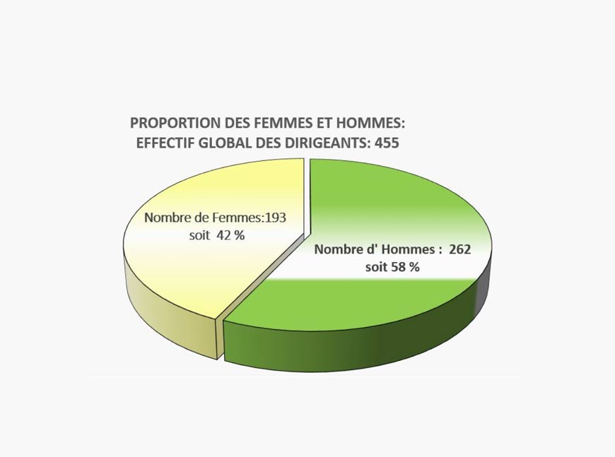 - Au 31/12/2023, le RCPB compte quatre cent cinquante cinq ( 455) dirigeants dont 42% de femmes.